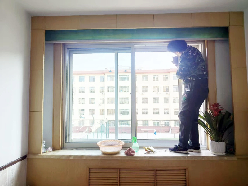 志愿者细心擦拭居民家中的玻璃 记者 陶林/摄