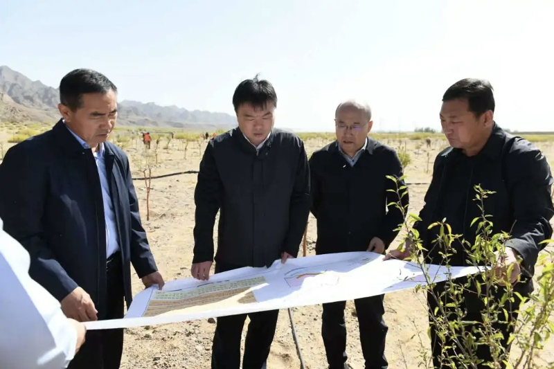 4月24日,市委副书记、市长张鸿福在乌拉特后旗呼和温都尔镇西补隆嘎查阴山一线生态治理项目区了解“三北”六期项目进展等情况。