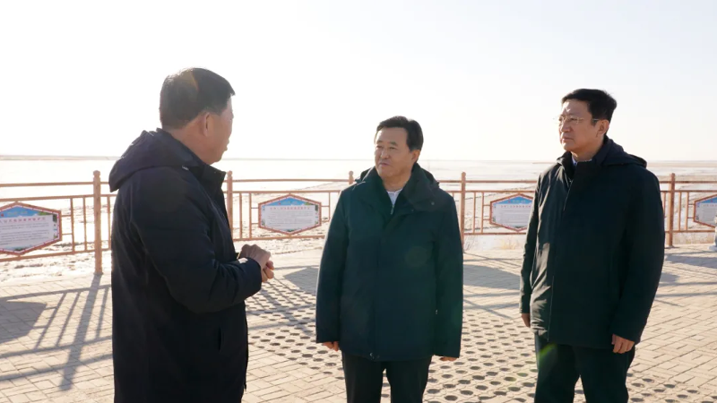 12月17日,市委书记、市总河湖长贺伟华深入临河区调研指导封河防凌工作。