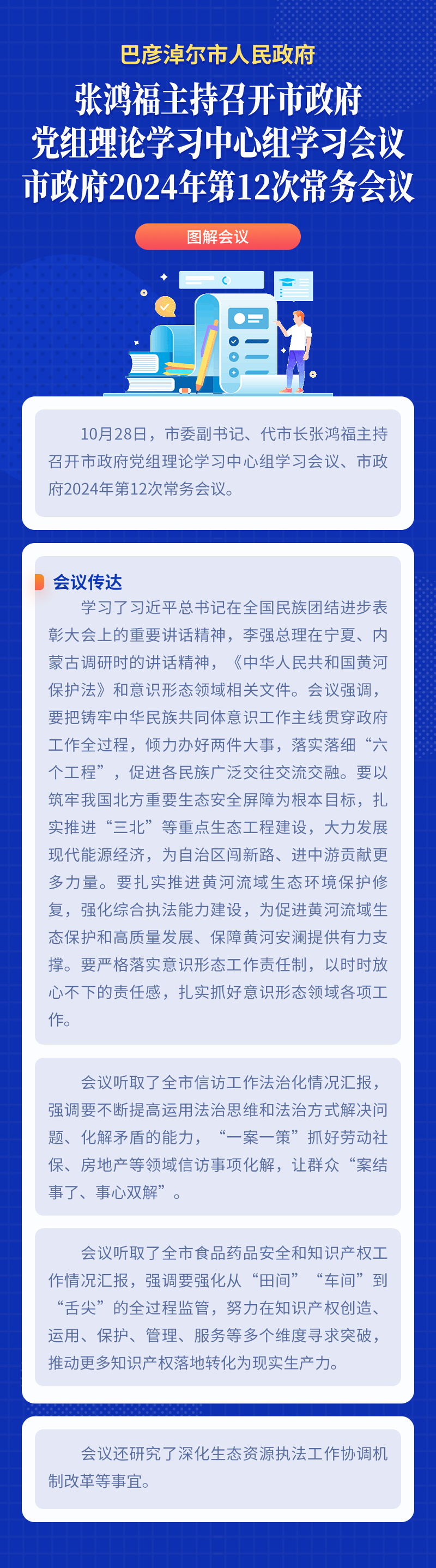 10月28日,市委副书记、代市长张鸿福主持召开市政府党组理论学习中心组学习会议、市政府2024年第12次常务会议。