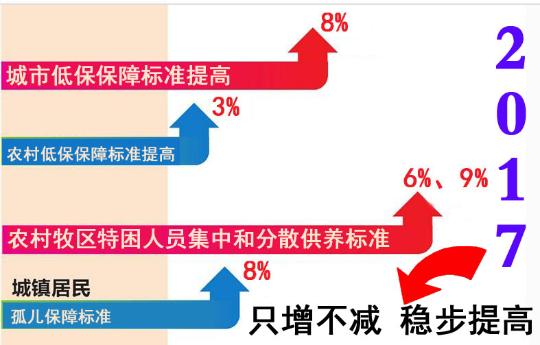 再来一组数据,2017年,困难群众救助保障标准又提高了!