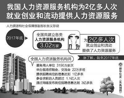 据张义珍介绍,截至2017年年底,全国共建立各类人力资源服务机构3.02万家,从业人员58.37万人,全年营业收入达1.44万亿元,为两亿多人次就业创业和流动提供了人力资源服务。但与此同时,人力资源市场发展不平衡不充分的问题也日益凸显。
