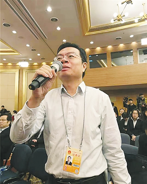 图为经济日报记者曾金华提问。记者 张雪 摄
