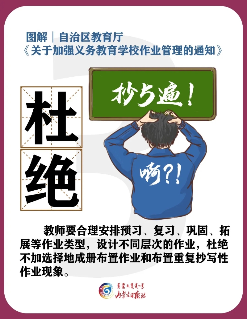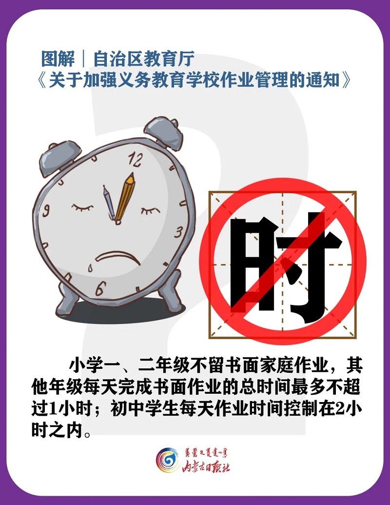 近日,自治区教育厅印发《关于加强义务教育学校作业管理的通知》,列出9项措施进一步规范义务教育学校作业管理。