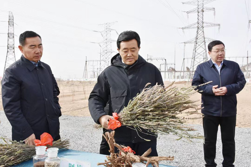 3月16日,市委书记贺伟华来到乌拉特后旗新红林业管护中心治沙示范园,实地调研项目推进情况。