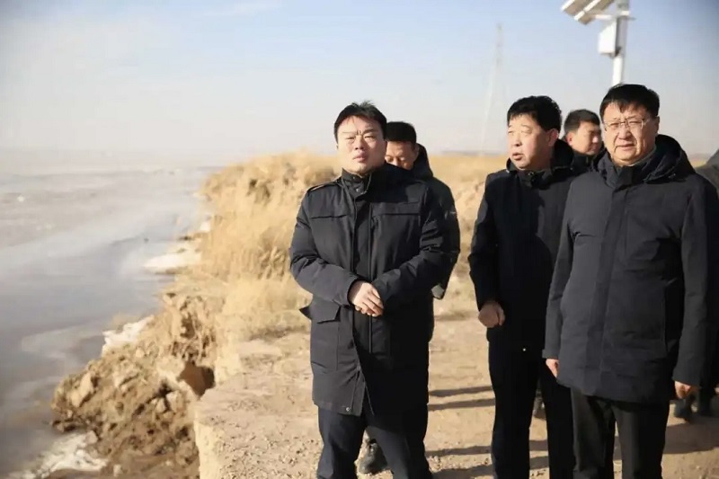 在乌兰布和应急分洪区,张鸿福实地察看黄河水情,详细了解河道融冰、凌情监测及应急准备等情况,要求全面开展风险隐患排查整治,强化预报预警,加强日常巡查检查,做好值班值守,确保黄河防凌安全。