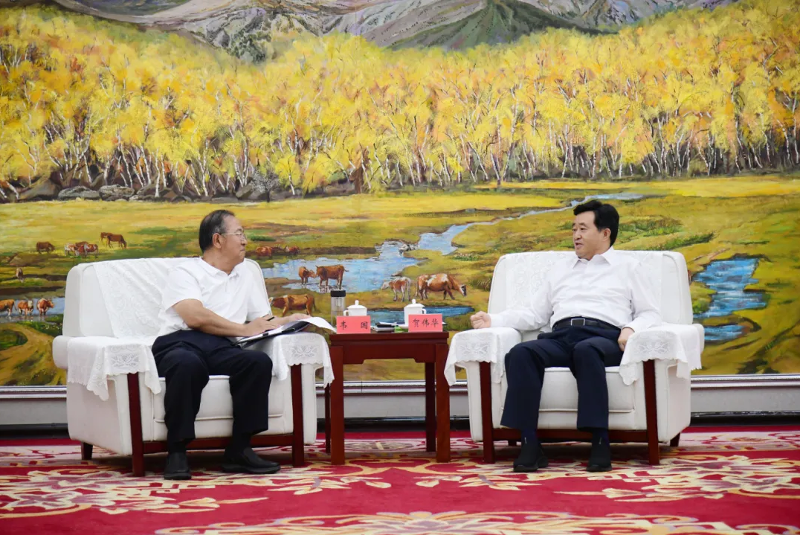 7月17日,市委书记贺伟华,市委副书记、市长王志平在临河会见中铁投资集团党委书记、董事长韦国一行,双方就进一步深化合作进行深入交流。