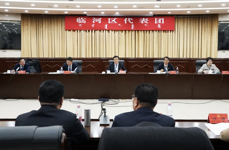 临河区代表团气氛热烈,赵峻岭、安文哲、瞿仓、魏博等代表先后发言,贺伟华不时同代表们交流。
