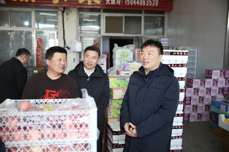 在四季青批发市场,张鸿福随机走访商户,详细了解商品价格、供销渠道及销量,强调要严把食品安全质量关,加强市场监测调度,做好产销衔接,确保货源充足、品类丰富、价格平稳。