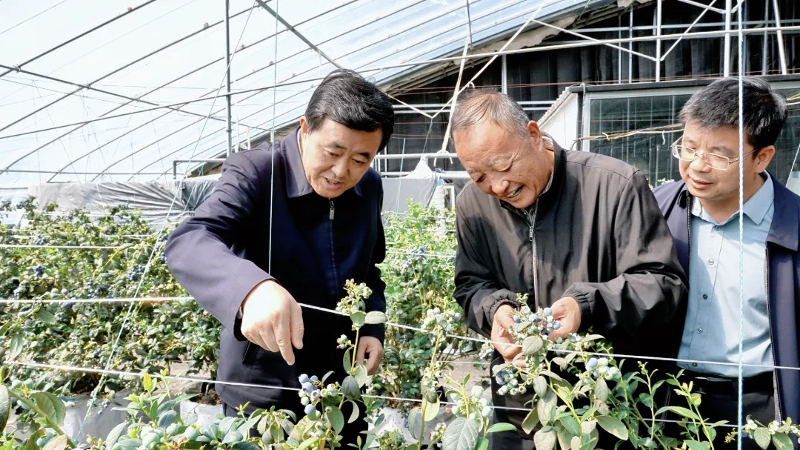 4月9日,市委书记贺伟华走进蒙海镇柴脑包村设施农业园区蓝莓种植大棚,与园区负责人细算投入产出账,仔细询问种植品种、经营模式、产量效益、订单销售等情况。