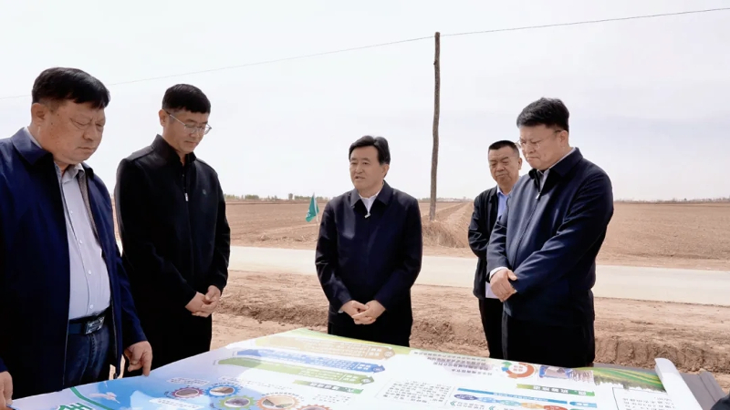 4月21日,市委书记贺伟华在五原县塔尔湖镇联丰村有机设施农业项目区实地察看工程进度,仔细询问运营模式、市场销售、联农带农等情况。