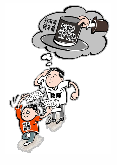 我国义务教育法规定,教师不得对学生进行体罚、变相体罚或者其他侮辱人格尊严的行为。一些教师担心被扣上“体罚”的帽子,常常对学生的不良行为“不敢管教”。