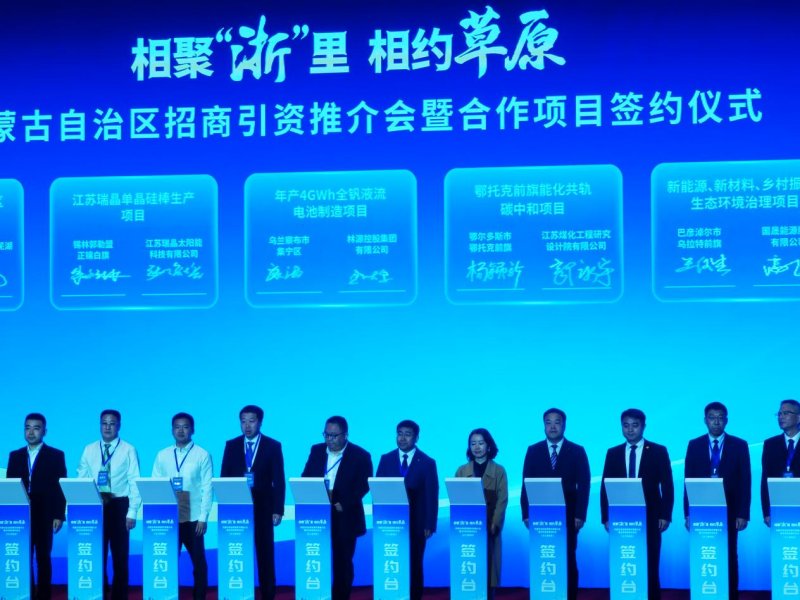4月24日上午,以“相聚‘浙’里 相约草原”为主题的内蒙古自治区招商引资推介会暨合作项目签约仪式在浙江省人民大会堂举行。巴彦淖尔市人民政府副市长任逸群,市投资促进中心及有关旗县区、项目签约企业及邀约企业代表参加活动。